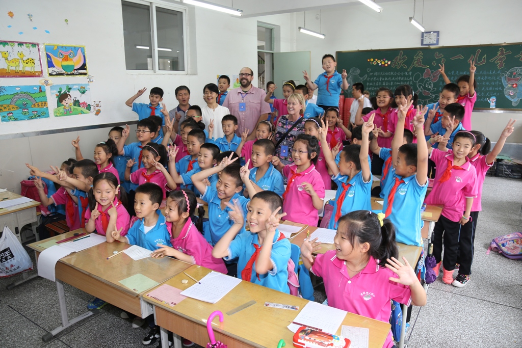 欢迎仪式上,访问团及随行人员共同观看了小学生唱诵《弟子规》表演及军乐队演奏,并给予高度赞赏。访问团分别参观了我校附中附小初中部和小学部的常规课堂教学以及厅廊文化展示。参观过程中,访问团首先饶有兴致地观摩了小学部教师冯博主讲的一节古诗词讲读课,深切感受到了中国传统文化的魅力;在中学部英语教师的讲解和引领下,访问团分别深入到多个课堂与学生亲切互动,学生回应积极踊跃,现场气氛和谐热烈。访问团对我校英语教师及学生的英语口语水平给予了充分肯定,并对学校内涵深刻的主题墙、寓教于乐的文化角以及丰富多彩的中国传统文化展示栏表示出了浓厚兴趣。