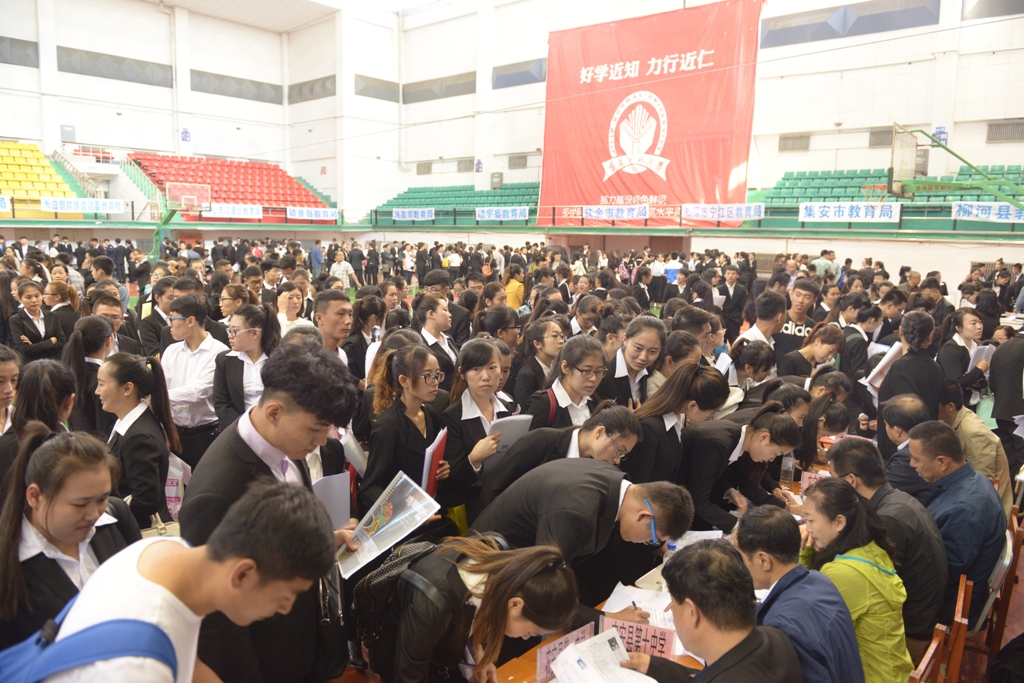 预备会后,在我校体育馆举行了供需见面会,全省20个县市区教育局及用人学校对我校及北华大学报名学生进行了教师招聘考核。我校近300名学生与用人单位达成签约意向。
