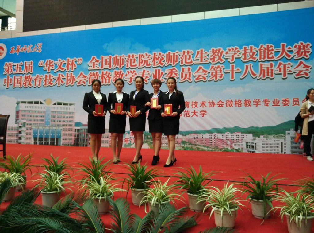 我校生命科学学院共有五位学生参赛。经过激烈角逐,五位学生在教学设计比赛中全部获得一等奖;在教学技能比赛中,孙琳琳同学获得特等奖,王英学、郑若絮同学获一等奖,王玉琦、董成成同学获二等奖。刘春明、程军老师被评为“优秀指导教师”。