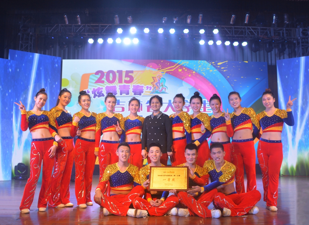 12月20日,共青团吉林省委、吉林省学生联合会主办的2015年吉林省大学生健身操(舞)大赛决赛在长春理工大学举行。经过激烈角逐,我校代表队(体育学院邹婷婷、王婉蓉、张月娥等,指导教师:李翠兰老师)荣获一等奖。