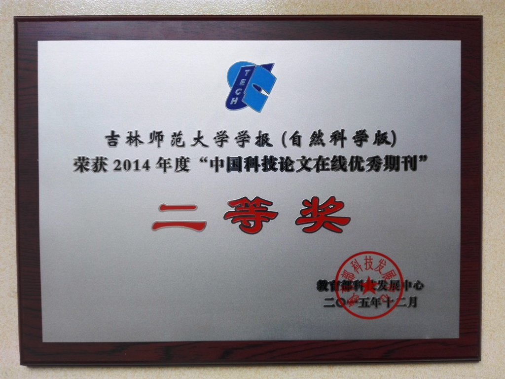 近日,教育部科技发展中心对截至2014年12月31日收录在“中国科技论文在线”《科技期刊》栏目的教育部主管的期刊进行评审,共评出二等奖183项,其中自然科学49项,我校理科学报位列其中,获2014年度“中国科技论文在线优秀期刊”二等奖。