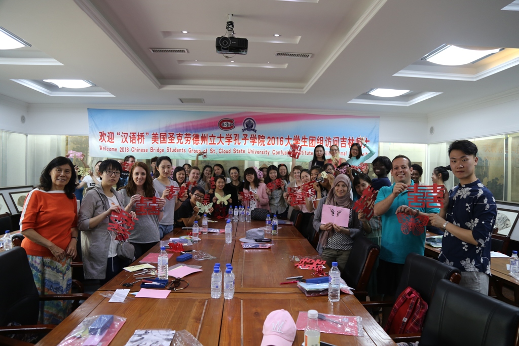 为增进中美学生交流,加深美国大学生对中国语言文化的了解和体验,国家汉办、吉林省汉办与美国圣克劳德州立大学孔子学院合作,邀请美国大学生来华参加“汉语桥—美国大学生夏令营”活动。5月20日—21日,“汉语桥”美国圣克劳德州立大学孔子学院2016大学生团组一行21人来到我校交流访问。校长杨景海会见了各位来访团组成员,对美国大学生来到中国、来到吉林师大表示热烈欢迎,并对中美大学生更深入的交流寄予期望。
