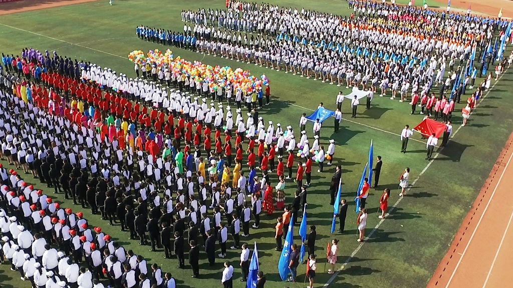 校长杨景海宣布运动会开幕。霎时间,欢呼声、呐喊声此起彼伏,运动场变成了欢乐的海洋。