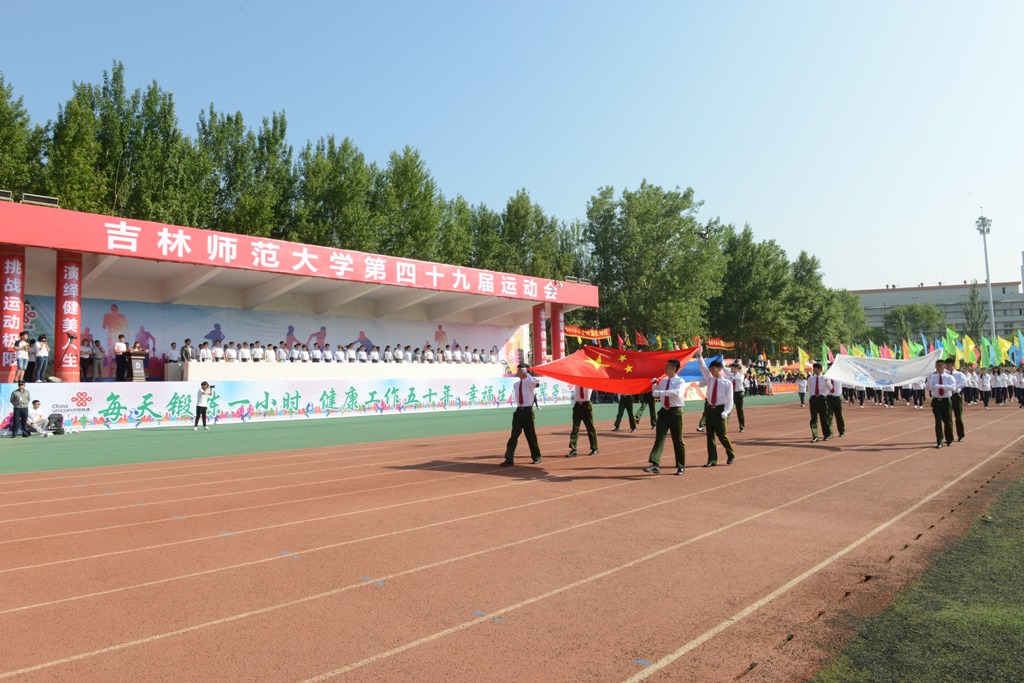 副校长李海波致开幕词。他代表学校,对运动会的顺利召开表示热烈祝贺,向为本次运动会付出辛勤劳动的教职员工和同学们表示衷心感谢,向参加运动会的裁判员、教练员、运动员致以崇高敬意。近年来,学校高度重视体育运动事业发展,不断加大投入,新建了网羽中心,加强了体育基础设施建设,推进了体育教育教学改革。群众性体育活动蓬勃开展,竞技体育成绩优异。去年,我校学生在第21届全国大学生击剑锦标赛上取得佳绩,填补了我校及吉林省高校在此项目上的空白,实现历史性突破。一年一度的运动盛会,既是对全校师生员工运动水平和群众性体育工作成果的全面检阅,更是对吉师人“自强不息,勇于超越”精神风貌的集中展示。他希望全体裁判员认真履行职责,做到严肃认真,公平公正;全体工作人员增强服务意识,尽职尽责,相互配合,确保各项赛事顺利有序;全体运动员遵守规则,服从裁判,发扬顽强拼搏精神,赛出风格、赛出水平。愿大家在体育精神的激励下,坚守“挑战极限的理想信念,勇攀高峰的动力精神,公平诚信的道德准则”,让吉师精神在运动中得到充实和发扬。