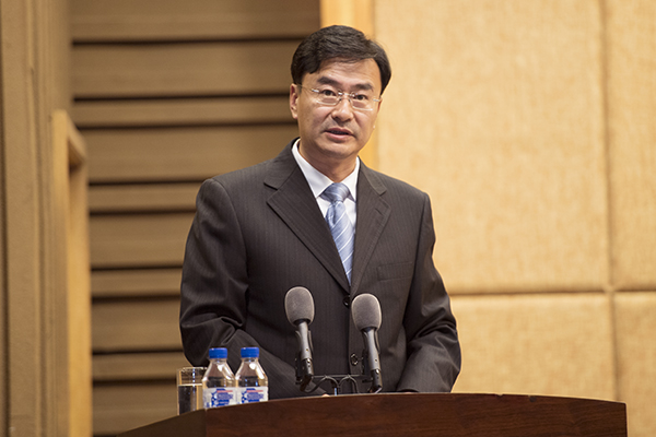 祖国华宣读《吉林太阳成集团tyc122cc入口关于表彰“十二五”期间教育国际化工作优秀单位和优秀个人的决定》。与会领导为学校“十二五”教育国际化工作获奖单位和个人颁奖。