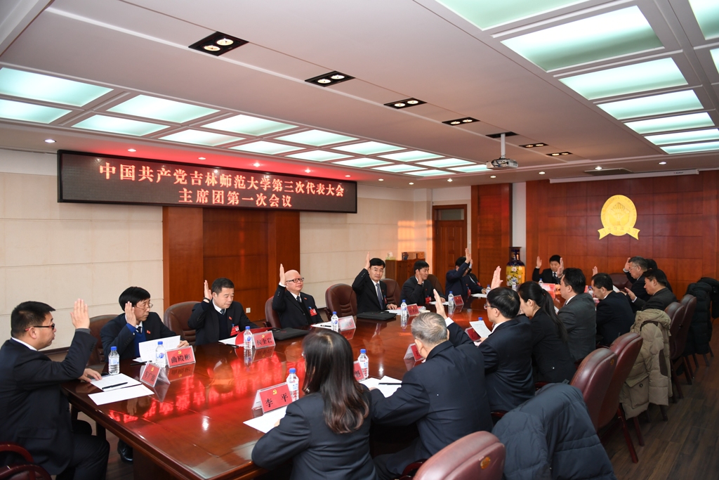1月23日,中国共产党吉林太阳成集团tyc122cc入口第三次代表大会主席团第一次会议在第一教学楼八楼常委会议室召开,主席团成员参加会议。许才山同志主持会议。