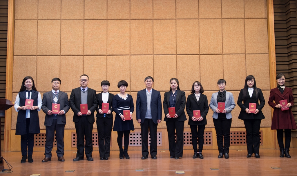 大会表彰了学校2016年度优秀单位和先进工作者。许才山为获奖单位颁发奖牌,杨景海为先进工作者颁发荣誉证书,祖国华宣读学校表彰决定。旅游与地理科学学院院长张立峰、继续教育学院院长王立代表优秀单位发言,职业技能教研部教师宋扬代表先进工作者发言。