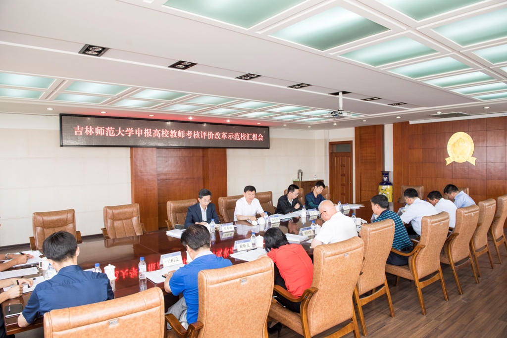 6月20日,省教育厅副厅长潘永兴带领教育厅教师工作处、高教处、职业与成人教育处等部门负责人来我校考察教师考核评价改革工作。校长杨景海、党委副书记祖国华出席汇报会,学校相关部门负责人参加了汇报。