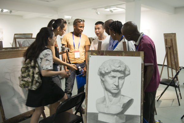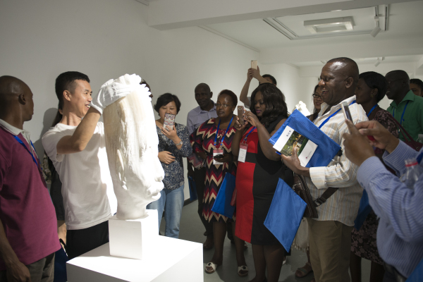 7月20日,由商务部主办、文化部中央文化管理干部学院承办的“2017非洲英语国家文化创意与设计研修班”学员参观了青年艺术家、我校美术学院教师李洪波在北京八一美术馆举办的“花海”个人作品展。研修班学员是来自津巴布韦、肯尼亚、尼日利亚、马拉维、南苏丹等国的信息文化官员和艺术管理者。我校党委副书记刘万民带队赴京代表学校接待并参加相关交流活动, 吉林省人民政府新闻办公室对外交流处处长李校时应邀参加本次活动。