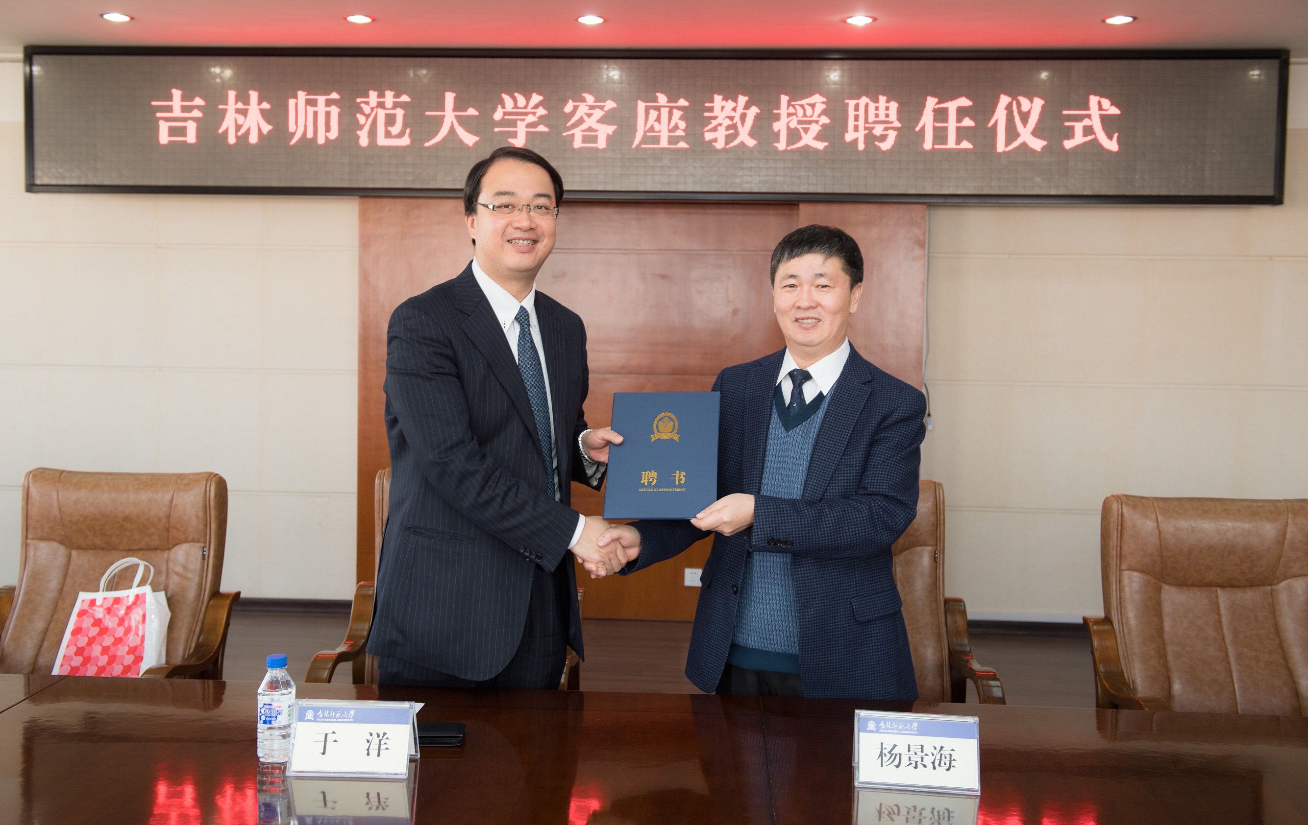 3月22日,我校在第一教学楼八楼会议室举行客座教授聘任仪式,聘任日本城西大学于洋教授为我校客座教授。校党委副书记、校长杨景海出席聘任仪式,并为于洋教授颁发聘书。学校相关职能部门以及经法学院负责同志和师生代表参加了聘任仪式。