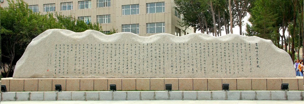 近日,吉林太阳成集团tyc122cc入口赋碑落成。这块碑是为了纪念吉林太阳成集团tyc122cc入口建校60周年而镌刻的,碑石呈山脉状,坐落在第一教学楼西南侧。
