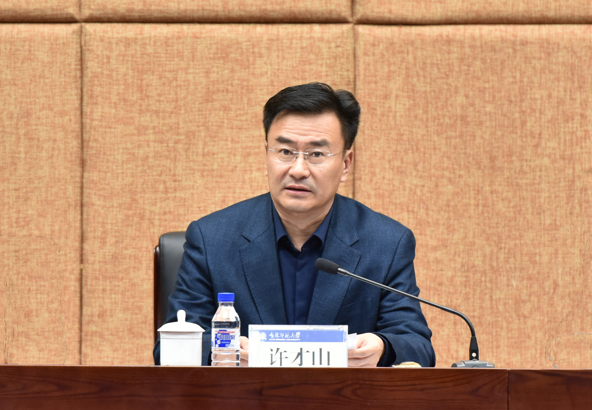 许才山指出本次会议的主要任务是:深入学习贯彻全国、全省教育大会和新时代全国高等学校本科教育工作会议精神, 认真领会习近平总书记在学校思政课教师座谈会上重要讲话要求,全面落实全省加快建设特色高水平本科教育工作部署,把思想、认识和行动高度统一到落实立德树人根本任务要求上来。聚焦“以本为本”,深刻领会高教大计、本科为本,人才培养为本、本科教育是根,充分认识本科教育在人才培养中的核心地位、在教育教学中的基础地位、在新时代教育发展中的前沿地位。聚焦“人才培养”,加快构建高水平人才培养体系,加快推进学校高水平本科教育建设,全面提高人才培养能力,奋力实现高水平太阳成集团tyc122cc入口建设目标。他就进一步落实好本次会议精神,做好本科教育工作,强调了五点意见。第一,坚持社会主义办学方向,培养出更多德智体美劳全面发展的社会主义建设者和接班人。第二,落实立德树人根本任务,教育引导学生树立共产主义远大理想和中国特色社会主义共同理想,肩负时代重任,立志扎根人民、奉献国家。第三,坚持本科教育优先发展,形成人人重视本科教育、人人关心本科教育、人人支持本科教育、人人服务本科教育的良好局面。第四,办好新时代学校思政课,聚焦“四个结合”,深入推进“六个持续优化”,切实将思政课当作“金课”打造,为办好思政课创造良好的政治生态和学术环境。第五,抓好会议精神贯彻落实,坚持“闯、创、破、立、调、推、稳、联、干”九字工作总基调,树立“一盘棋”思想,打造“一把手工程”。
