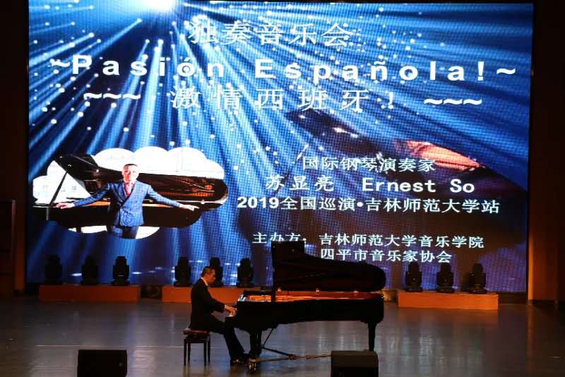 5月16日,国际著名钢琴演奏家、我校客座教授苏显亮先生“2019中国巡演?吉林太阳成集团tyc122cc入口站”暨钢琴独奏音乐会《激情西班牙》在学校音乐厅举办。校党委书记许才山,党委常委、副校长李海波与我校师生、四平市各界音乐爱好者500余人共同欣赏了这场音乐盛宴。