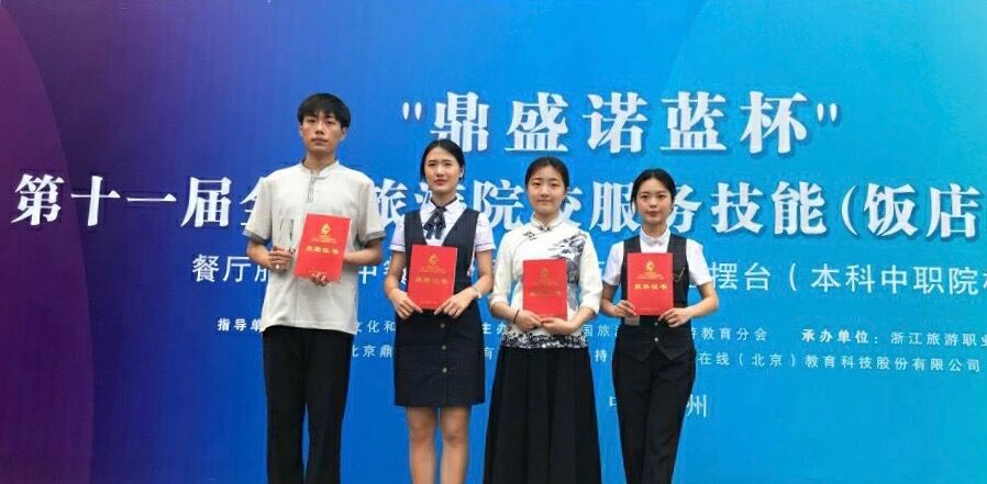 近日,由中国旅游协会旅游教育分会主办的“鼎盛诺蓝杯”第十一届全国旅游院校服务技能(饭店服务)大赛在杭州举行。共有来自全国31个省、市、自治区、直辖市298所院校的954名参赛选手参赛。经过激烈的角逐,我校旅游与地理科学学院学生黄恩泽获高校组中式铺床赛项一等奖,王慈获高校组中餐摆台赛项二等奖,张睿可、李思思分别获高校组西餐摆台和鸡尾酒调制赛项三等奖。