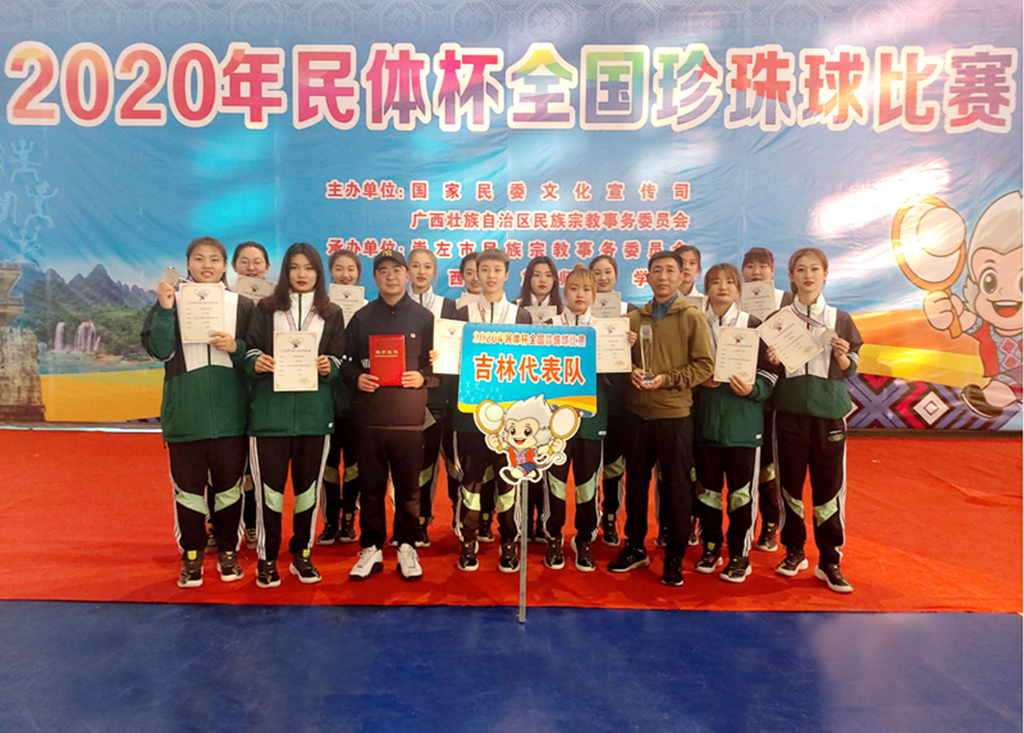 近日,由国家民委文化宣传司和广西壮族自治区民族宗教事务委员会主办,崇左市民宗委和广西民族师范学院承办的2020年“民体杯”全国珍珠球比赛在崇左市举办,大赛有来自吉林、宁夏、浙江、湖南、重庆、河北、江苏、广西等省(区、市)的12支代表队参赛。我校体育学院首次派出女子珍珠球运动队代表吉林省参赛,在教练佟云龙老师的指导下,经过3天的激烈角逐,最终获得本次比赛二等奖。