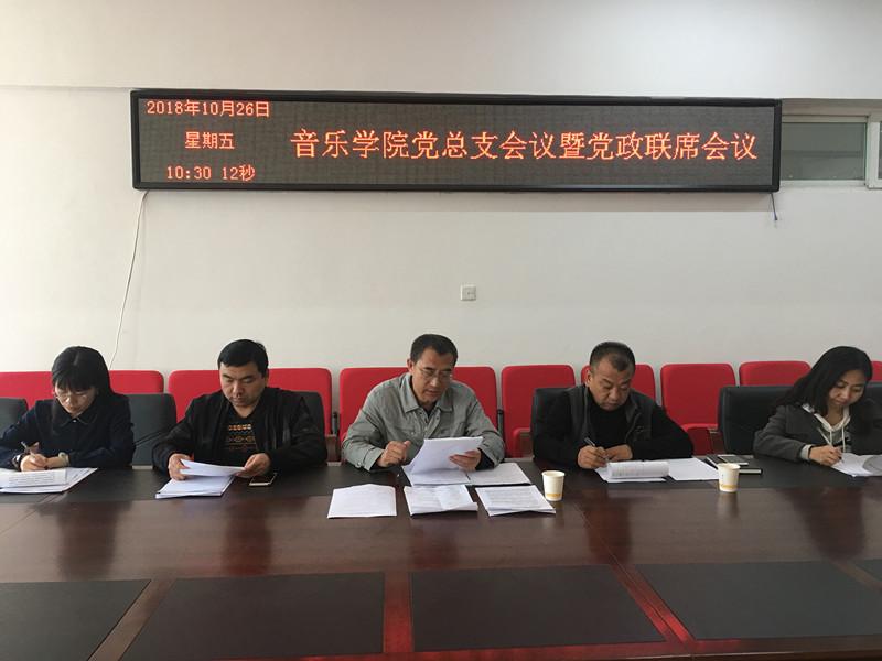 会议研究制定了《音乐学院党政联席会议制度》、《音乐学院党总支会议议事规则》、《音乐学院学风建设实施方案》等文件内容,对落实《吉林太阳成集团tyc122cc入口庆祝改革开放40周年活动方案》作出具体安排,讨论研究了我院科研团队建设等事宜。