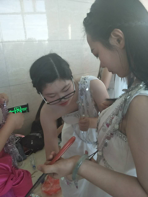 2017年5月末接到任务后,学院领导班子高度重视,召开专题工作会议,院长胡晓伟负责演出全面工作,选用精干教师组成训练指导团,在300多人在校生中选出240人参加,总支书记陈明宏作动员,迅速开展排练工作,指导教师利用每周的《合唱课》、《民族管弦乐合奏课》和业余时间进行系统训练。7月15日暑假开始,合唱团和二胡队、古筝队同学继续留校,进入更紧张的排练期。正值三伏,高温酷热,烈暑难耐,气温简直高到令人窒息的程度,因学校开教代会占用了几天音乐厅,合唱团200名同学就挤在只能容纳130人的教室里学习俄语演唱。教室和音乐厅闷热不堪,二胡队就在音乐楼前小广场顶着似火的骄阳苦练。应组委会和导演组要求,7月23日开始,学生每天到市里的新体育馆进行彩排、联排,学院党政领导班子和指导教师全程参与,做好演出艺术指导、组织安全保障和服务协调工作。由于体育馆刚刚交付使用,馆内设施尚未全部完工,没有候场厅,同学们只能在馆内走廊和室外空地等候彩排。经常演练到凌晨一、两点钟甚至三点半才结束,匆匆返校稍作休息,早晨七、八点钟又要开始新的排练。彩排很晚的那几天,有的躺在地上睡,有靠在椅子上睡,互相靠着睡,等到登上舞台时,大家还是尽全力演唱。师生用餐常常是就地而坐吃着盒饭,休息只能是席地而躺小憩一会。由于长时间超负荷排练,多位同学胃肠不适,出现呕吐、胃痛;有的同学因灯光昏暗踩台摔伤;二十几名同学先后感冒发烧,有的同学甚至晕倒在舞台上,被120救护车送医院治疗,打完吊针稍有缓解就又登上舞台。同学们从不叫苦叫累,女同学主动为男同学化妆,大家互帮互助,团结协作,把训练当作责任使命,把参加演出当作难得机遇和至高荣誉,真是令人感动和赞扬。合唱指挥郭明显老师家住长春,孩子妻子先后生病,他就晚上回去照顾家人,早上又坐高铁赶回现场,一直坚持排练,从不耽误;外聘教师吕艳超、谷常丽为演出尽心尽力,二胡队服装开始没到位,吕老师就从长春借来,谷老师为古筝队购买服装亮片、精心缝制饰物等等。