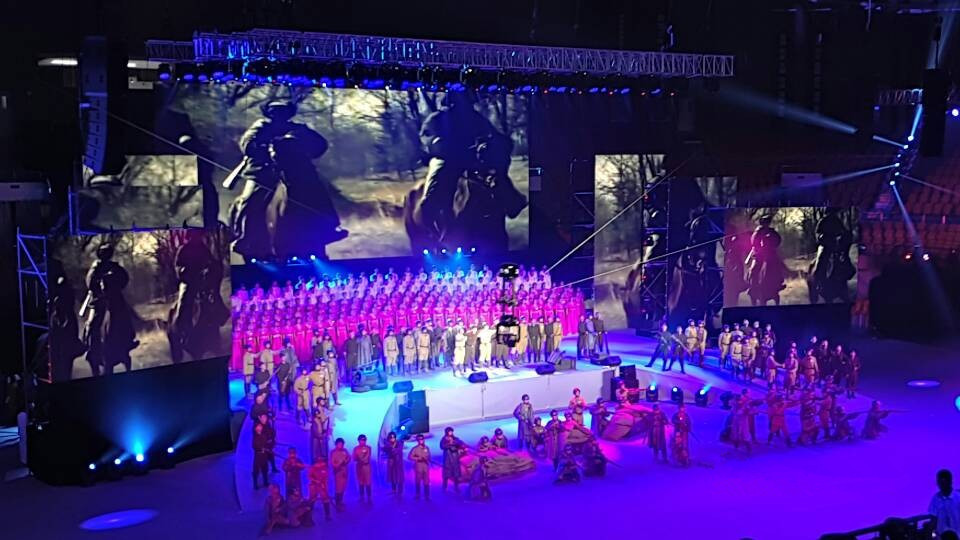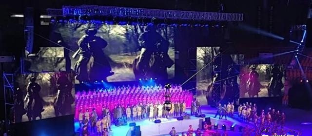 文艺演出包括《和平赞》、《友谊颂》、《家乡美》、《航空梦》四个篇章,分两个场次,7月31日面向各界群众和广大市民,8月1日主要面向参加军事比赛的中外部队官兵。经过两个月精心刻苦排练,音乐学院200人合唱团用中俄双语演出了情景合唱《神圣的战争》、《红梅花儿开》、《莫斯科郊外的晚上》、《喀秋莎》、《并肩战斗》等经典歌曲,时而气势磅礴,时而抒情低徊,时而婉曲悠扬,贯穿并支撑起了整个第二篇章《友谊颂》,把整场演出推向高潮;同时还在最后一个篇章演唱了谢幕歌曲《不忘初心》、《友谊地久天长》。二胡队和古筝队在晚会的第三篇章联袂演奏了《万马奔腾》等民乐联奏,气氛浓烈,特色鲜明,惊艳无比。作为本次晚会演出阵容最大的团队,我们的演出受到组委会和导演组的好评和肯定,成为本次晚会的最大亮点,提高了演出的水平和层次,更博得了包括我校党政领导在内的现场领导、观众特别是俄罗斯、白俄罗斯官兵的多次掌声和啧啧称赞。