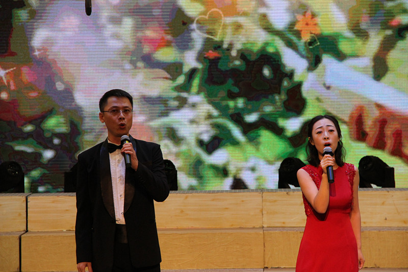 表彰大会后,由郭明显老师指导的我院合唱团再次以中俄双语唱响了“航空飞镖”国际军事比赛文艺演出中的歌曲《神圣的战争》、《莫斯科郊外的晚上》、《喀秋莎》、《红莓花儿开》、《并肩战斗》、《友谊地久天长》;民乐二胡合奏《赛马》让人仿佛置身于大草原的万马奔腾之中,器乐节目《战台风》和《哈尔的移动城堡》展现了古筝的磅礴气势和弦乐重奏的高雅清新;葛丹老师演唱的《美丽家园》大气奔放,杨庆斌、吕梦莹老师演唱的《追寻》唱出了同学们的心声,石有权、刘奇龙同学演唱的新版《水手》富有新意,点燃了现场观众的热情。作为今年我校各学院的第一台迎新晚会,内容精彩纷呈,专业水准高,为新生作了方向性的示范与引领。