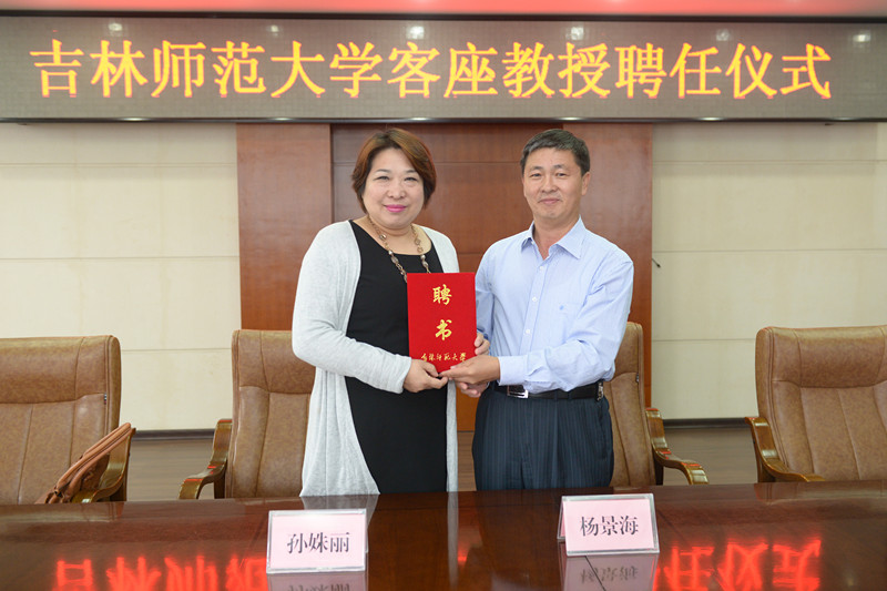 9月9日,学校在第一教学楼八楼会议室举行客座教授聘任仪式,聘任女中音歌唱家、吉林大学艺术学院教授孙姝丽女士和吉林省钢琴协会会长、吉林艺术学院教授唐明顺先生为我校客座教授。校长杨景海教授亲自为孙姝丽教授、唐明顺教授颁发了聘书,校纪委书记刘银善主持聘任仪式。