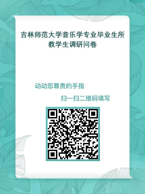 为了解我院音乐学专业人才培养情况,了解毕业生、用人单位、毕业生同行、毕业生所教学生、学生家长对学校的评价,为学校人才培养、各项管理服务等提供科学依据,为此,正委托第三方机构北京新锦成教育技术有限公司开展毕业生、用人单位、毕业生同行、毕业生所教学生、毕业生家长调查,诚邀您的参与。