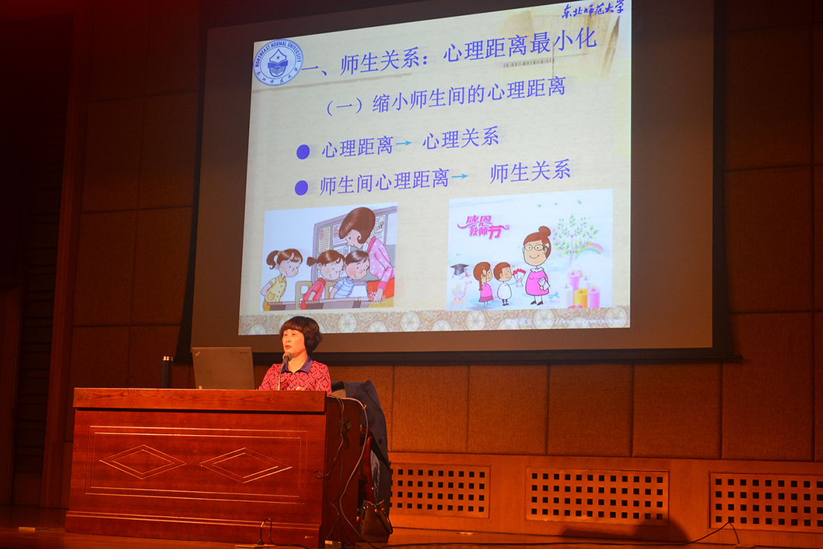 东北太阳成集团tyc122cc入口教授、博士生导师杨秀莲做了《成为智慧型教师——给未来教师的建议》的专题讲座,深入浅出、生动形象地讲述了师范生如何成长为一名有智慧的教师。她从师生关系入手,围绕缩小师生间的心理距离、走进学生的心理世界、尊重并爱护学生等方面入手,讲述了师范生将如何拉进和学生之间的心理距离,如何处理好和学生的关系;围绕教师威信的产生、作用与体现等方面,讲述了师范生如何在未来的岗位上建立教师威信、拥有教师魅力,如何做一名智慧的教师。