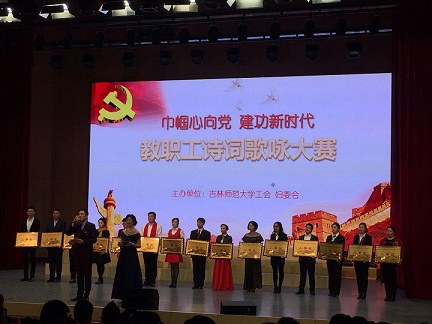 为贯彻落实党的十九大精神,喜迎吉师六十华诞,我校于4月13日晚在音乐厅举办了“巾帼心向党,建功新时代”教职工诗词歌咏大赛。我院工会组织薛洪波、夏宇旭等21名教师组成代表队参加了本次活动。