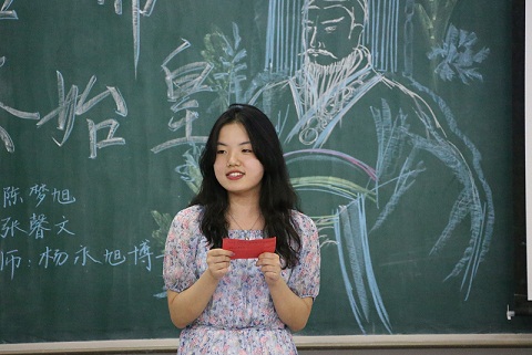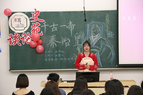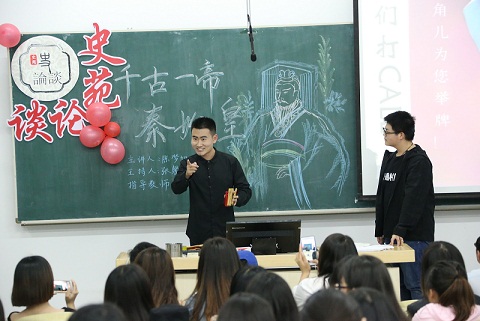 主持人张馨文开篇点题,从地下军队百万铁骑到强秦争霸统一中原,引出今日论谈的主人公千古一帝—秦始皇。陈梦旭从大秦帝国南征北战,霸业初成到秦始皇十年热血,统一六国再到统治不施仁义,帝国陨落三大方面对人物对秦史展开讲解。娓娓道来一个朝代的兴与衰,一代霸主的豪气万丈。陈梦旭借鉴史书典籍以讲述秦国强盛的过程。历史风云变幻间皆是刀光剑影,秦王扫六合,虎视何雄哉!吞诸侯,并天下,称皇帝,秦始皇终成霸业。严厉法,重徭役,失民心,乱小人,帝国最终陨落。仁义不施,而攻守之势异也。论谈中还邀请到经法学院的翟熠纯和文学院郭鑫同学展现了精彩的相声表演,掌声不断,将论谈现场的氛围推向高潮。