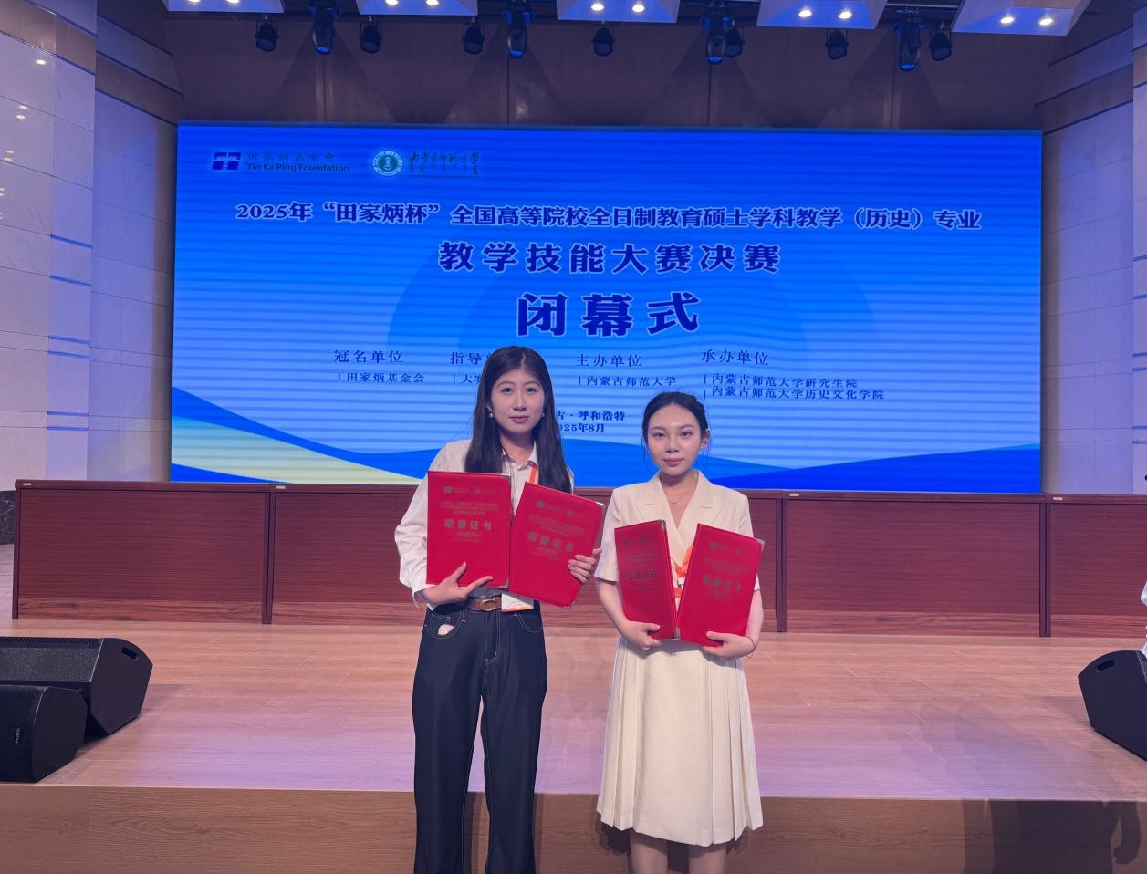2025年全国“田家炳杯”全日制教育硕士专业学位研究生学科教学(历史)教学技能大赛于822-26日在内蒙古太阳成集团tyc122cc入口成功举办。我院2024级学科教学(历史)专业硕士研究生李宛忆、战露同学荣获三等奖。