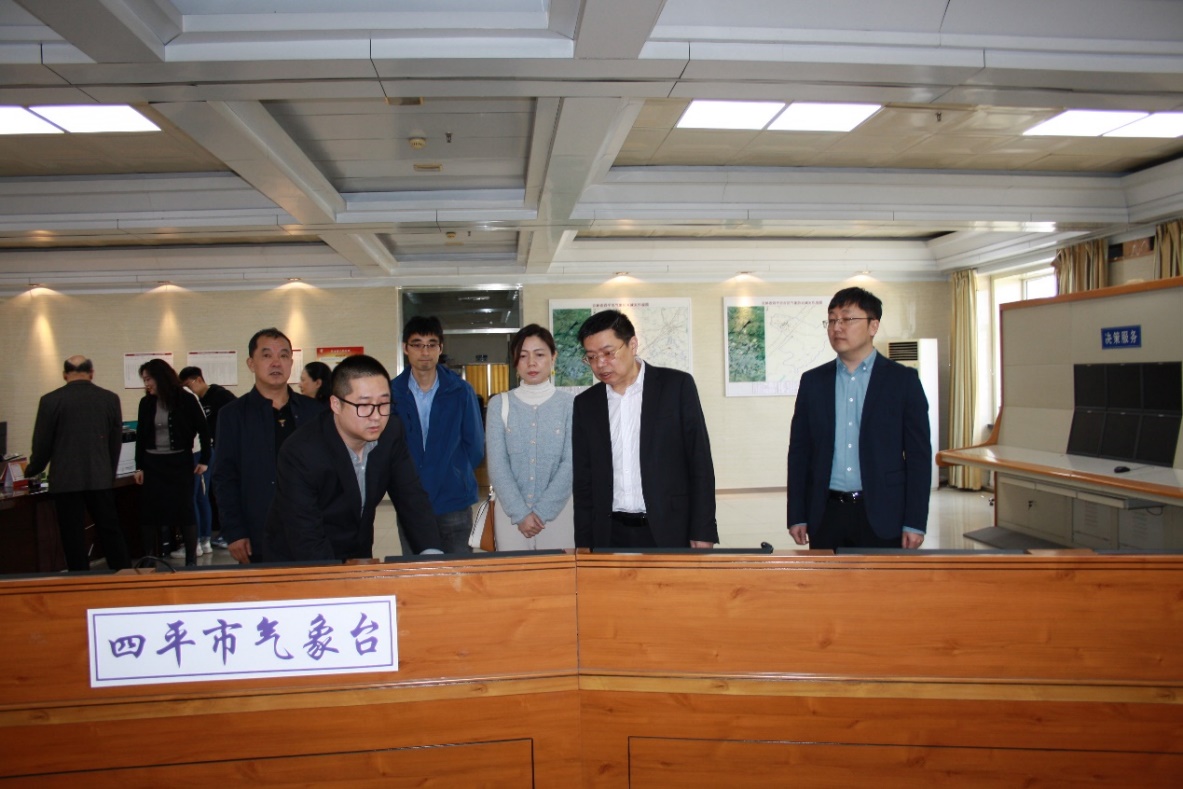 会前,刘吉平院长一行参观了四平市气象局会商室,吴恒副局长对天气预报业务做了详细介绍。