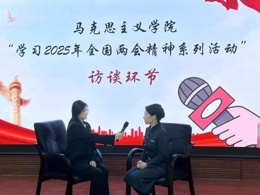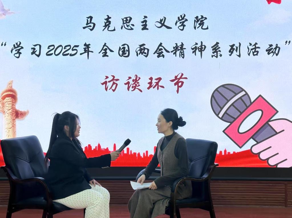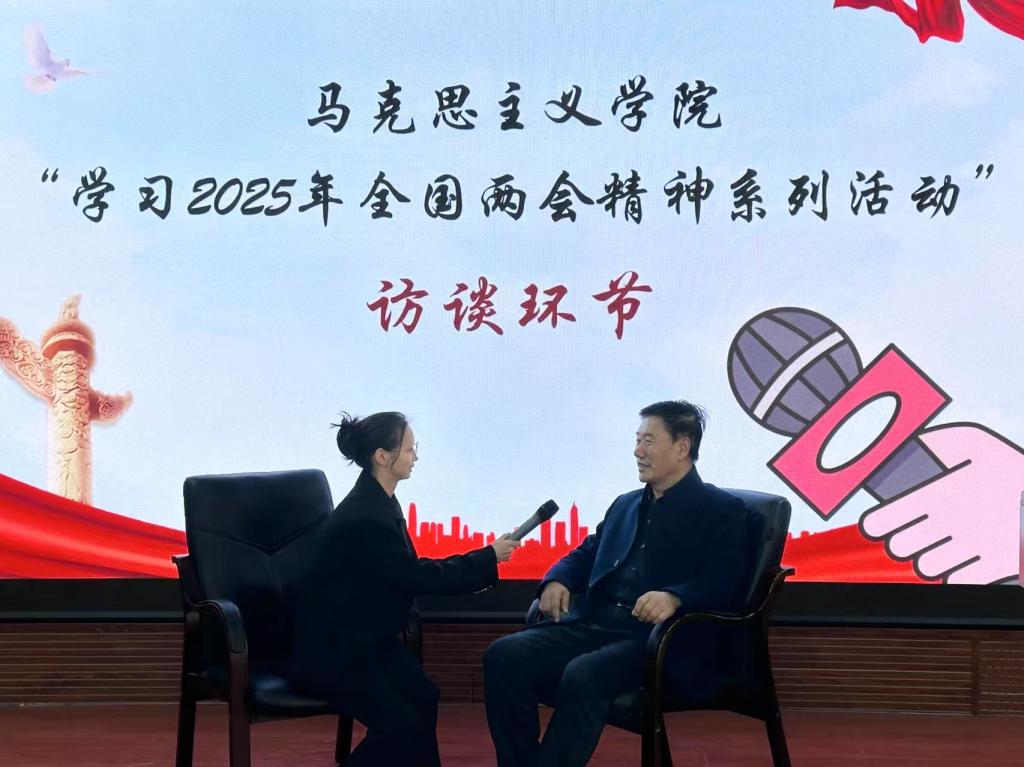 听民声,纳民意,汇民智,聚民力。2025年是“十四五”规划的收官之年,也是“十五五”规划的谋划之年,更是全面深化改革的关键之年,意义非凡。2025年全国两会的胜利召开,似春风化雨润泽华夏大地,如战鼓催征振奋国人心灵。这不仅是一场凝聚民意、汇聚民智的盛会,更是一次指引方向、擘画蓝图的征程,也为我们提供了宝贵的交流契机。围绕2025年全国两会精神的重要论述,我院社团联合会媒体宣传部特别专访了马克思主义学院院长王柏文、党委副书记王春波、副院长刁小行、副院长张宇、副院长柴琳,就2025年全国两会精神在高校教育中的落地与实施进行深入探讨。