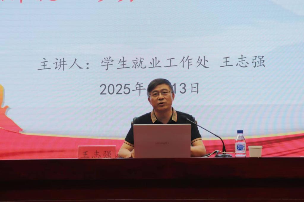 本次报告会特邀我校学生就业工作处处长王志强担任主讲人,我院党委副书记王春波、分团委书记兼学工办主任马荣陆、辅导员兼工会主席杜世豪出席,在校本科生及研究生共计357人参加,2025届毕业生线上观看。本次报告会由王春波主持。