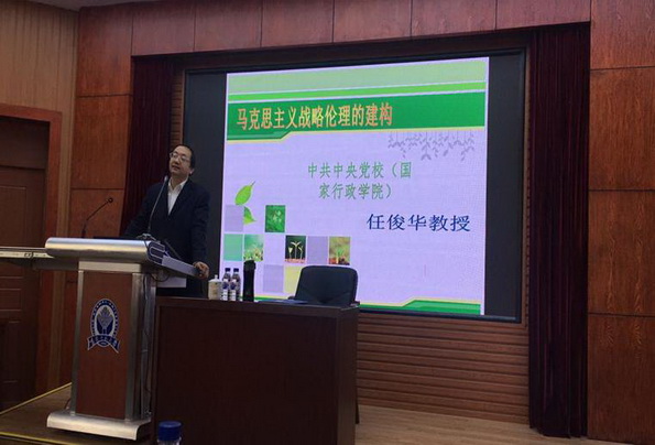 3月26日,中共中央党校(国家行政学院)博士生导师任俊华教授来我院进行主题为“马克思主义战略伦理学的理论建构”专题讲座。任教授从“构建战略伦理学的必要性”、“人性论假设与战略伦理的构建”、“构建马克思主义战略伦理的方法论”及“马克思主义战略伦理建构的原则与路径”四个方面阐释了自己的观点和看法。