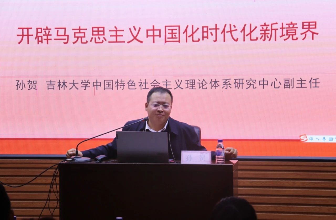 为深入学习贯彻习近平新时代中国特色社会主义思想,推动党的二十大精神全面融入思政课,进一步提高思想政治理论课教师教育教学水平,我院于2023年10月30日上午在田家炳教育书院124报告厅举行教育教学系列讲座。本次活动邀请吉林大学中国特色社会主义理论体系研究中心副主任孙贺教授,作题为“开辟马克思主义中国化时代化新境界”的专题讲座,我院全体教师、2023级全体研究生、思想政治教育专业本科生代表共同参加了此次讲座。会议由我院院长王柏文主持。