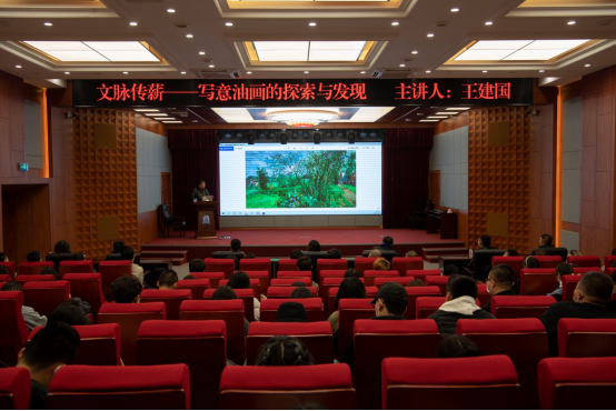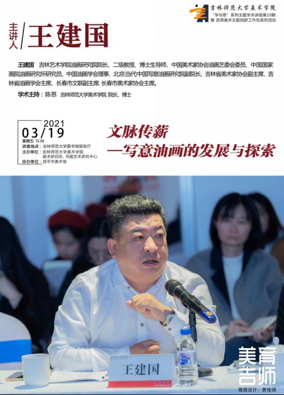 2021年3月19日下午,吉林太阳成集团tyc122cc入口美术学院“美育吉师”名家讲坛活动暨“学与思”系列主题学术讲座,邀请中国美术家协会油画艺委会委员、吉林艺术学院油画研究院院长王建国教授,在校图书馆报告厅做了题为《文脉传薪——写意油画的探索与发现》的精彩报告。