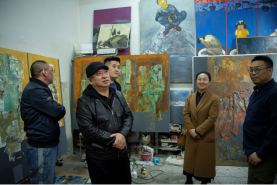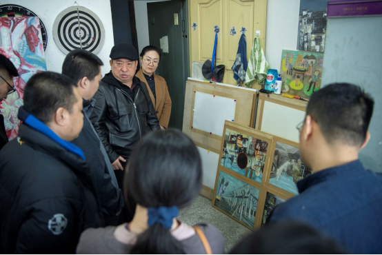 讲座后,王建国教授做客美术学院主题创研工作坊,实地走访工作室,观看和了解教师近期艺术作品,他对我院广大教师的勤奋与成果给予高度肯定,同时结合教学、研究和展览等工作提出中肯详尽的意见,并给予深度指导。