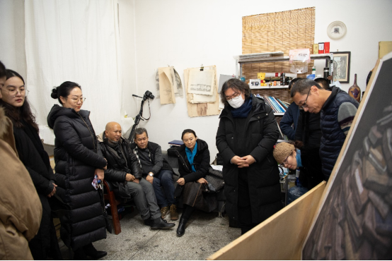 走访之后,宋学智教授针对绘画材料与表达、主题性美术创作与展览、项目申报等问题进行对话座谈。