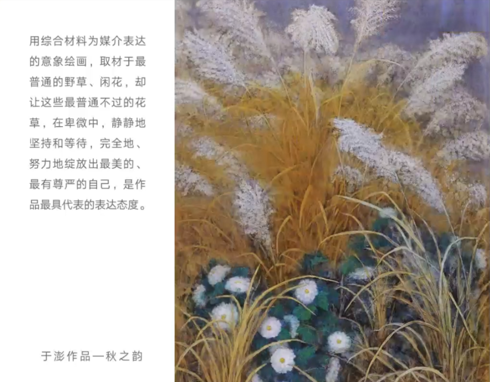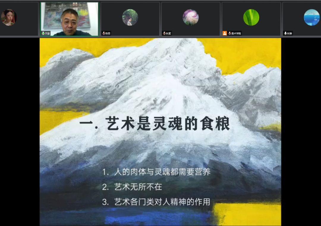 于澎教授通过对艺术价值的阐释,梳理东西方古今绘画的艺术特征,进而引出讲座的主题——东西方碰撞下的当代意象绘画,并指出:“艺术是灵魂的食粮”。