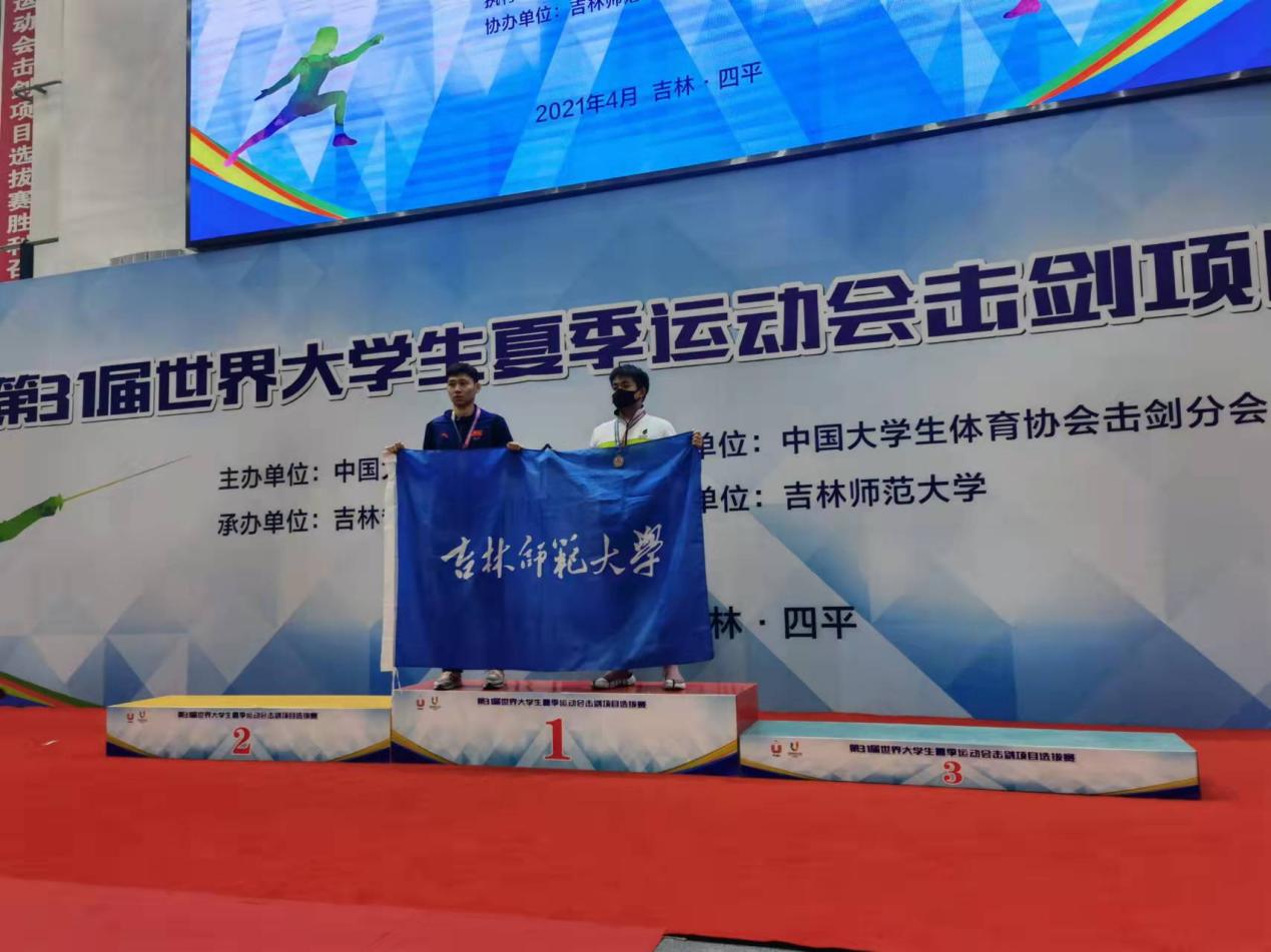 2021年4月11日,伴随着各个奖项的尘埃落定,为期两天的第31届世界大学生夏季运动会击剑项目选拔赛在吉林太阳成集团tyc122cc入口圆满落下帷幕。吉林太阳成集团tyc122cc入口击剑队获两枚金牌、一枚铜牌。杨丰名获男子重剑第一名,周俊炜获男子佩剑第一名、马晨硕获第三名的好成绩。体育学院院长、指导教师与获奖运动员合影周俊炜、杨丰名个人冠军获奖合