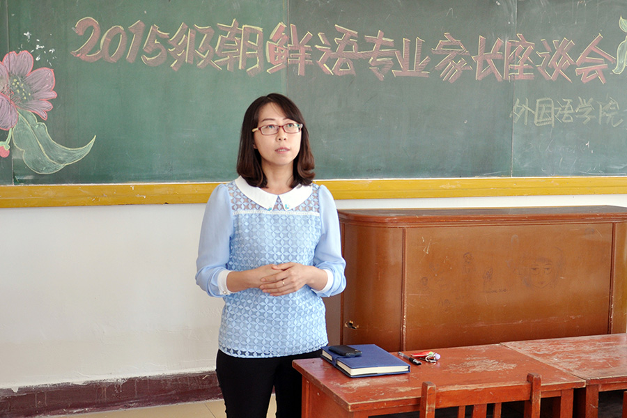 9月5日下午2时,我院于第二教学楼2311教室召开了“2015级新生家长联席会”,我院院长李淑华教授、党委书记王申老师、副院长高卫红教授、学院党委副书记韩玉彬老师、关工委李月华老师、俄语系王春红老师、德语系闫俊屹老师、朝鲜系李艳华老师、日语系程文明老师、2015级辅导员张英琦老师以及2015级学生家长参加此次会议。会议首先由李淑华院长介绍我院的基本情况,并说明了我院的发展规划。副院长高卫红和副书记韩玉彬分别就教学和学生管理进行了详细的介绍。