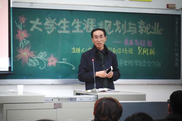 12月2日下午6时30分,我院于第二教学楼2311教室举办“大学生生涯规划与就业”——未来与技能专题讲座。此次讲座由我院知名校友英语系86届毕业生吴凤桥老师作为主讲人。吴老师曾担任我院辅导员和专任教师,现任宏宝莱公司副总经理。我院党委书记王申、副书记韩玉彬、全体辅导员老师、以及部分学生参加了此次讲座。