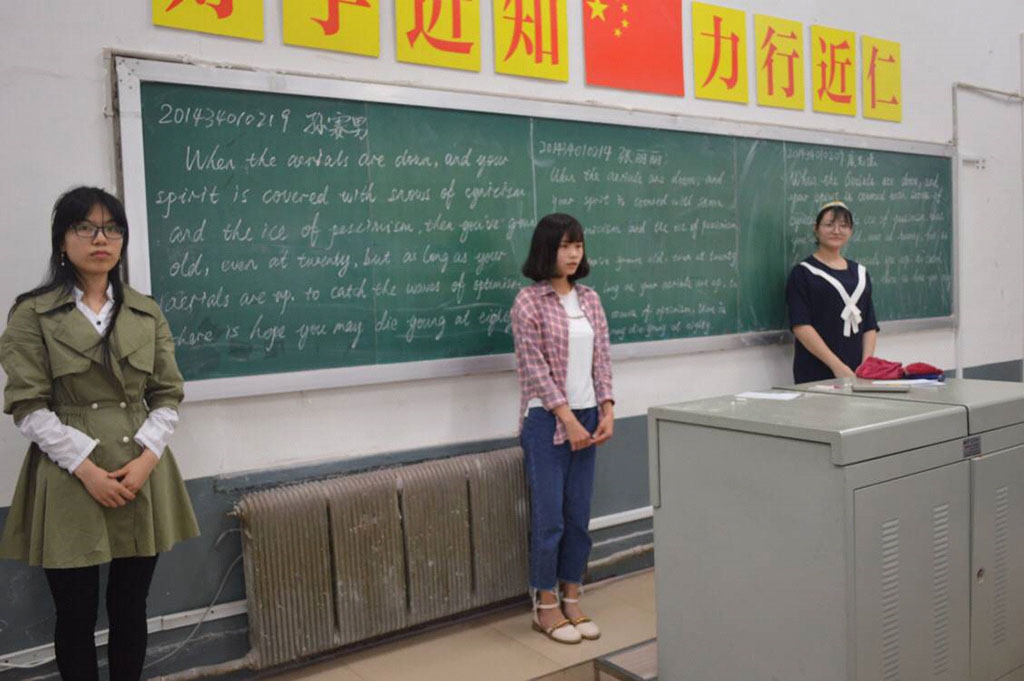 为促进英语师范生职业技能提升,展示师范生的文字基本功,英语系近日举办英语板书大赛,英语系14级和15级免师班全体同学参加了比赛。经过以班级为单位的初赛、复赛选拔,共有28位选手参加了6月5日在2311教室举办的决赛。本次板书大赛由英语系教法教研室组织筹办,决赛由实践部承办。决赛的评委老师由教法教研室刘慧、侯秀杰、闫爱静、何丽敏老师担当。