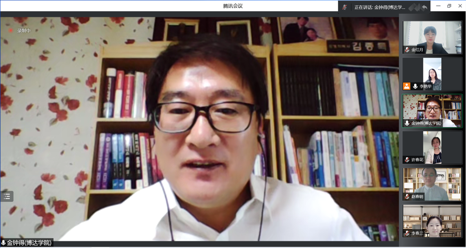 6月6日下午,语言文化沙龙通过线上举办第29期活动,本次沙龙邀请韩国朝鲜大学经贸学院客座教授、经营学博士金钟得担任主讲,金钟得通过近2个小时的时间与朝鲜语系师生共同分享了“高校经贸韩国语课程教学方法探析”学术报告会,沙龙由朝鲜语系主任李艳华主持。本次沙龙受到了韩国学中央研究院的资助。