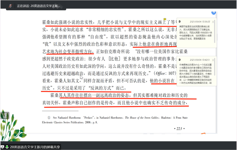 为营造研究生的学术氛围,展现研究生积极向上的精神风貌,促进研一新生尽快适应研究生的学习生活, 12月3日上午,学院线上举办英语语言文学专业研究生学术交流会。交流会邀请研三和研二年级6名学生代表进行经验分享。会议由英语文学研究方向负责人高卫红教授主持,英语语言所所长崔建立教授及相关教师出席,全体英语语言文学研究生参会。