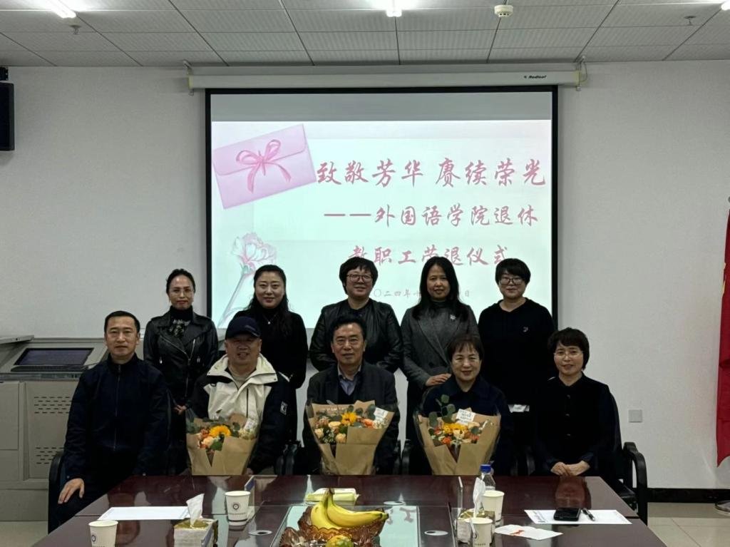 春风育桃李,荣退敬芳华。为表彰和感谢退休教师对教育事业的贡献,10月24日下午,学院在双创2楼会议室召开“致敬芳华 赓续荣光”退休教职工荣退仪式,欢送景伟明、高洪第、孙淑霞、徐平、王申光荣退休。院长李淑华、党委书记韩强、副院长赵岩、李艳红、潘雁,办公室主任赵天琪、工会主席纪颖出席仪式。高洪第、徐平、王申应邀参加仪式。仪式由李淑华主持。