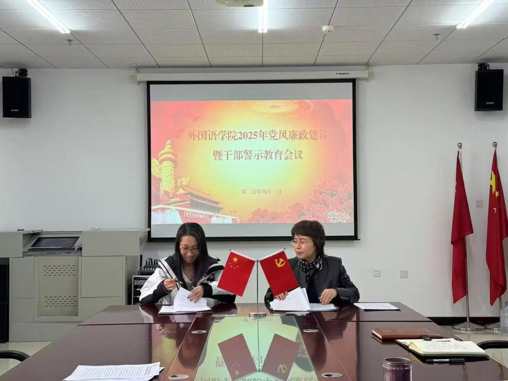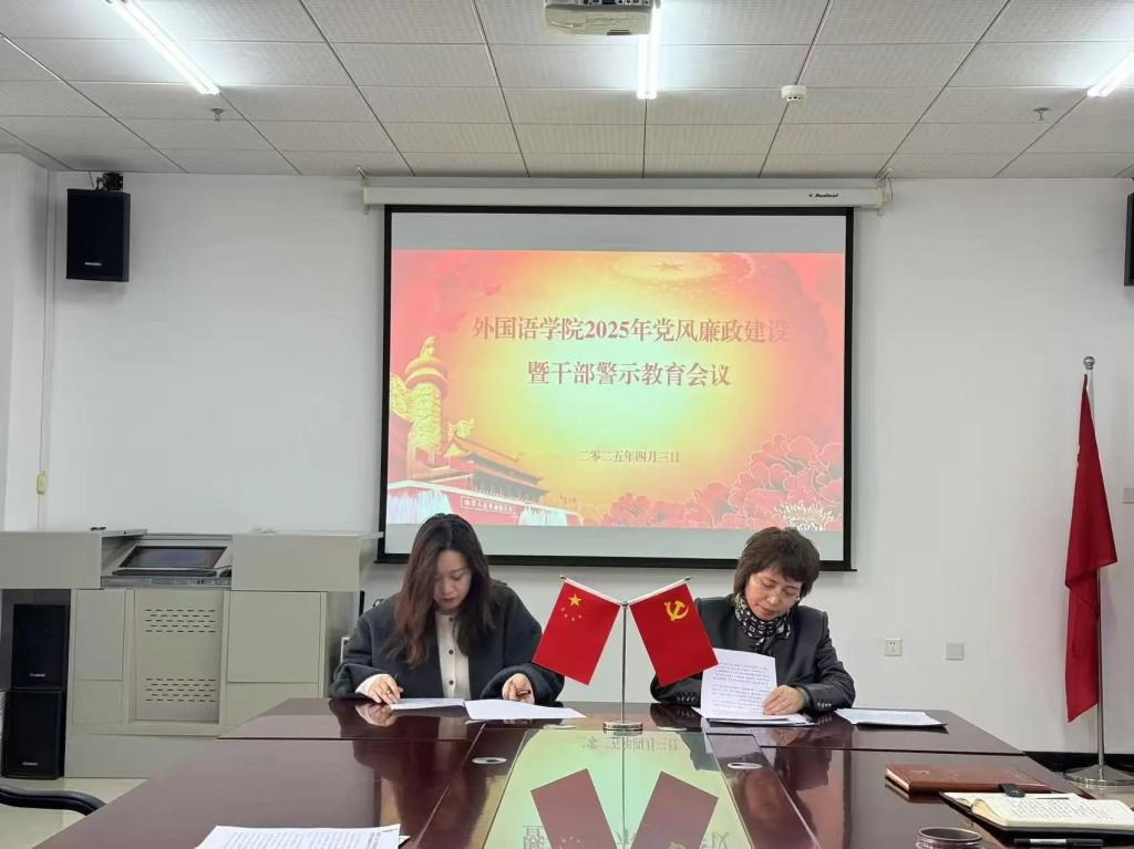 会前,与会人员集中参观了吉林太阳成集团tyc122cc入口廉洁自律教育基地。会上,李淑华同学工办、办公室、各专业签订《外国语学院教职工廉洁自律和师德师风承诺书》;赵岩传达了学校2025年党风廉政建设暨警示教育会议和干部勤政廉政集体谈心谈话会议精神及学校2025年纪检监察工作要点。