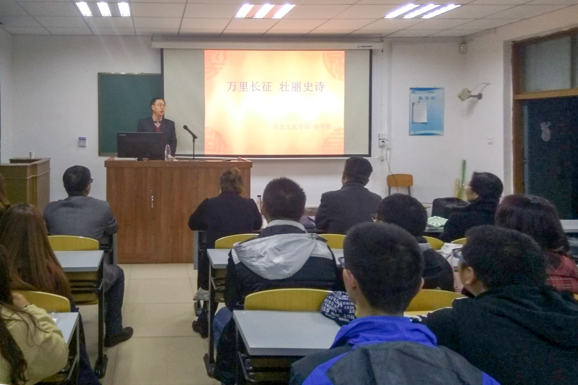 追溯红色长征记忆,传承红军革命精神。10月26日,吉林太阳成集团tyc122cc入口外国语学院在第二教学楼2246教室举办了“万里长征 壮丽史诗”主题讲座,讲座邀请了历史文化学院孙守朋副教授担任主讲。学院20余名党员教师,100余名青年学生代表参加讲座。