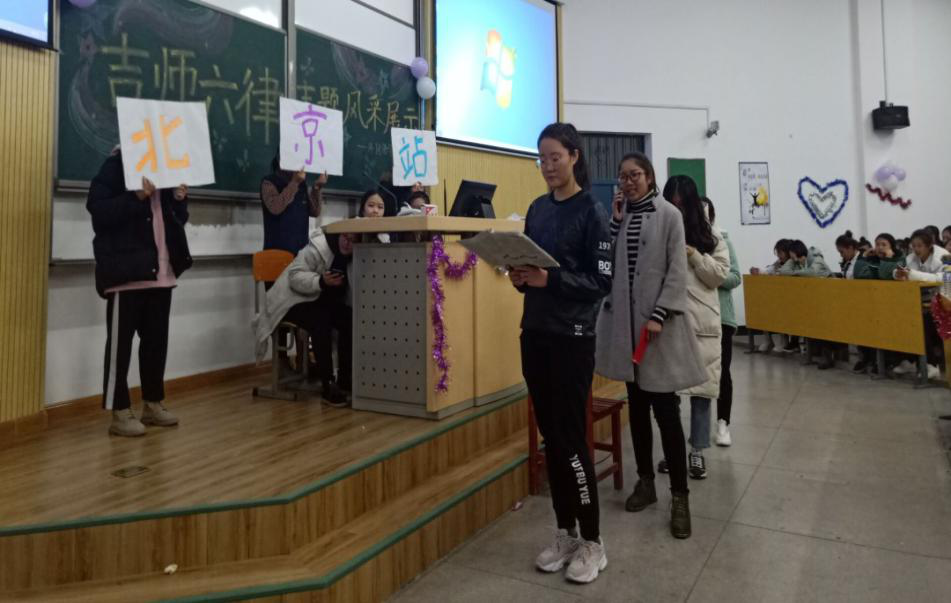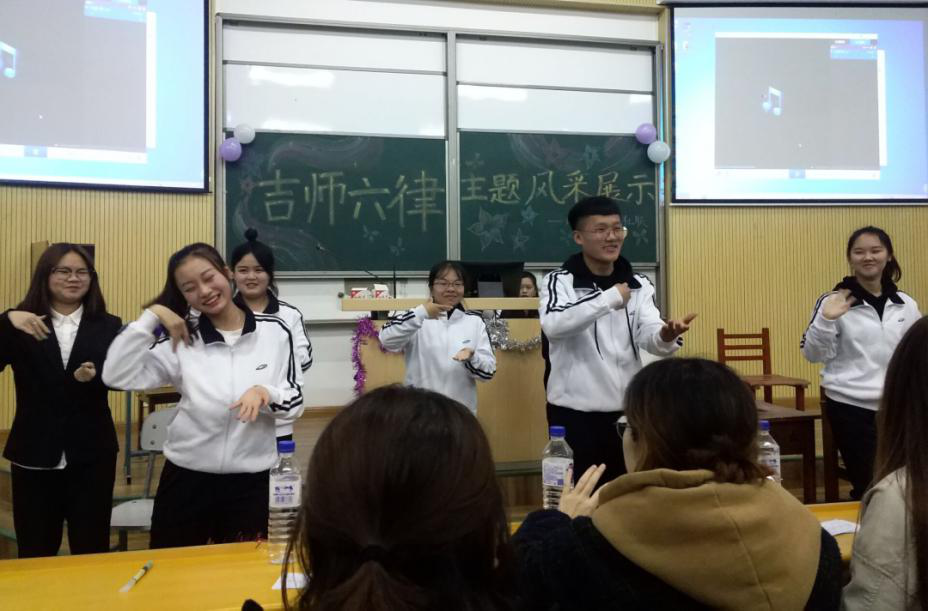 为切实加强学风建设,有效推动“吉师六律”活动进班级,营造良好的文明环境。11月13日晚,外国语学院在6103教室举办“吉师六律”主题诠释大赛,由张铭序、陈宇欣同学担任主持人,2018级全体同学全程参与。