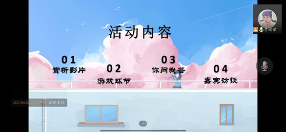 活动共包括观看心理健康教育专题视频、游戏互动、常识问答、嘉宾访谈四个环节。