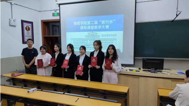 为加强我院学生教学技能基本功的训练,提高我院师范生运用所学知识开展教育教学活动的能力,培养创新精神和实践能力。2023年9月9日物理学院第二届“新竹杯”模拟课堂教学大赛在第三教学楼3301教室成功举办。